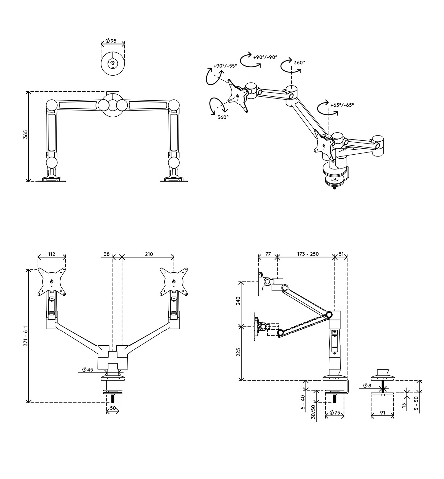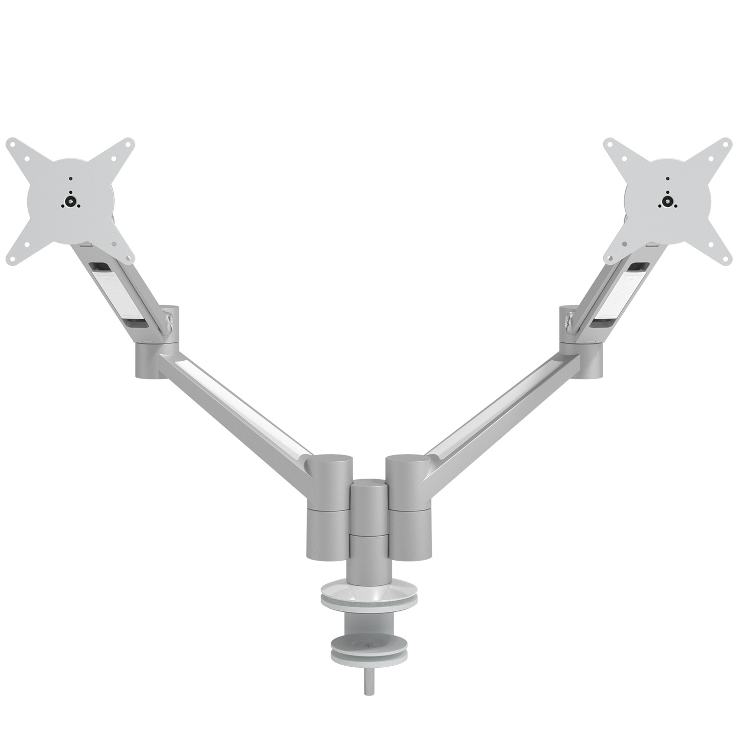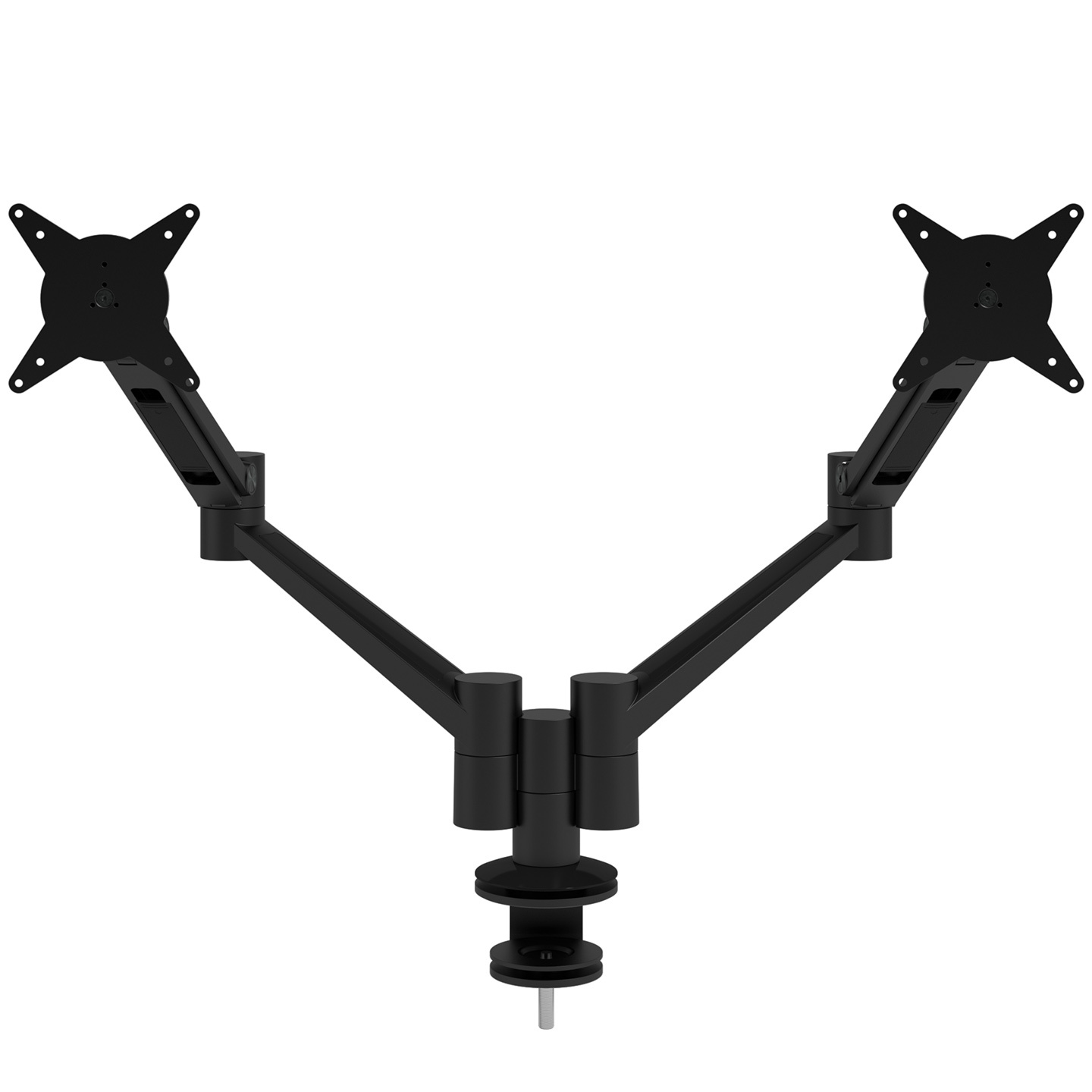 Voor het bevestigen van twee monitors of apparaten, onafhankelijk van elkaar aan te passen in de diepte en dynamisch in de hoogte. Hierdoor zijn verschillende monitors en apparaten eenvoudig uit te lijnen en kan elke gebruiker zijn eigen optimale ergonomische positie vinden.