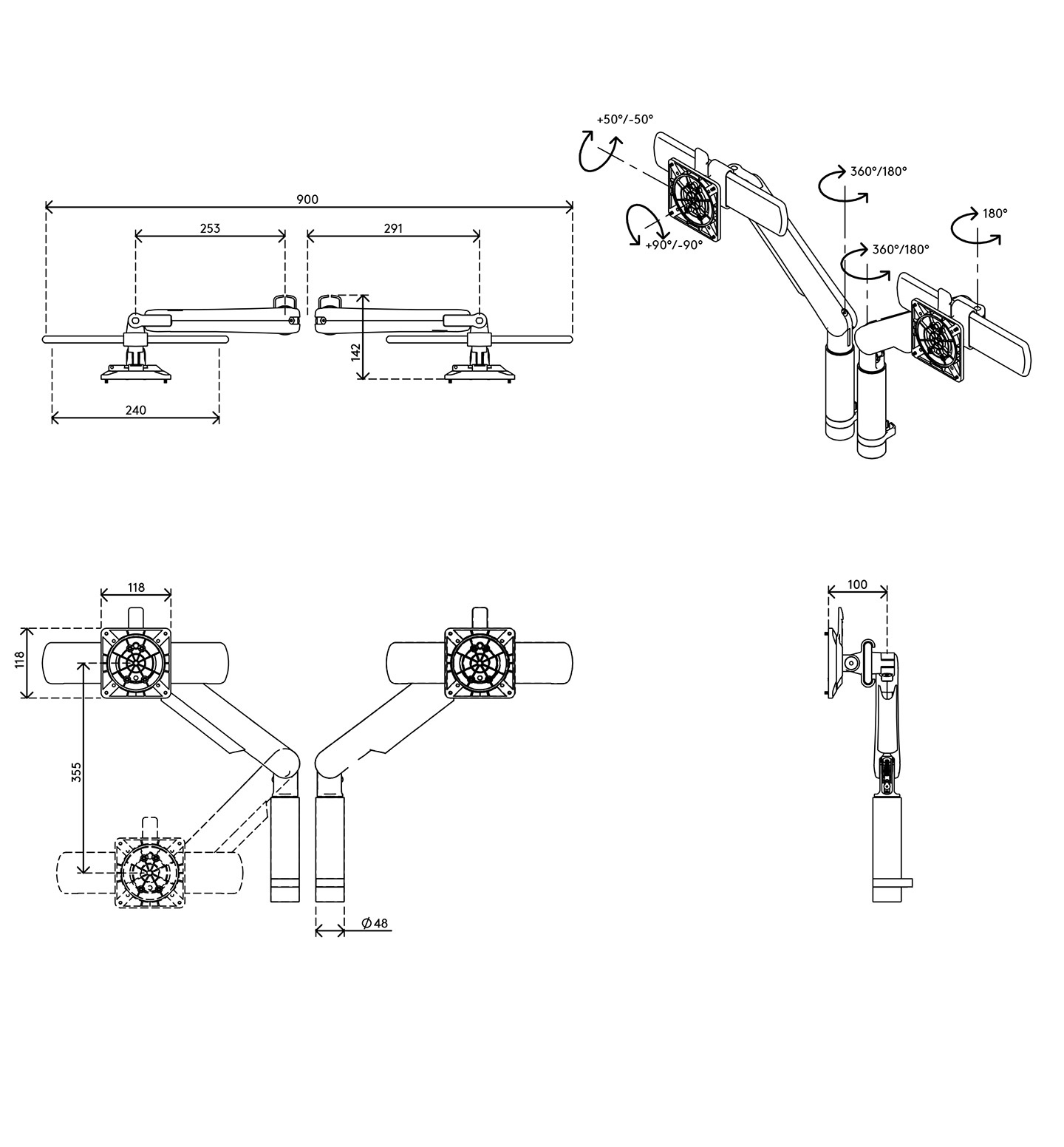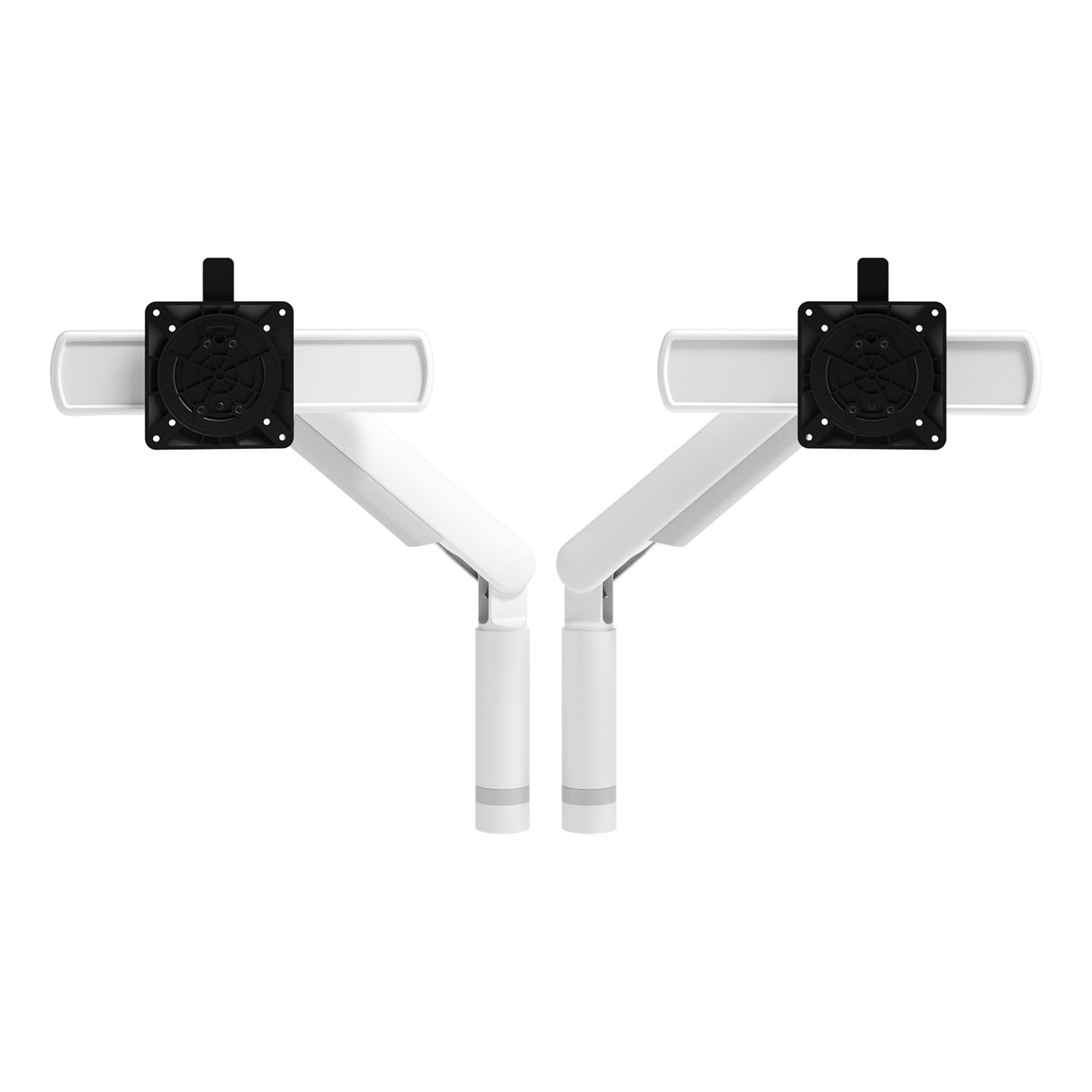 Minimale footprint, maximale inzetbaarheid. Met de unieke monitor-sliders kunnen gebruikers de twee monitoren afzonderlijk en intuïtief bewegen. Daarnaast kunnen de monitoren helemaal naar achteren worden verplaatst en toch exact worden uitgelijnd. De hoogwaardige gasveren maken een dynamische hoogteverstelling mogelijk door een licht handgebaar, terwijl de zorgvuldig ontworpen draaipunten ervoor zorgen dat de beeldschermdieptes soepel kunnen worden ingesteld. Een volwaardige monitorarm met een bekroond ontwerp.