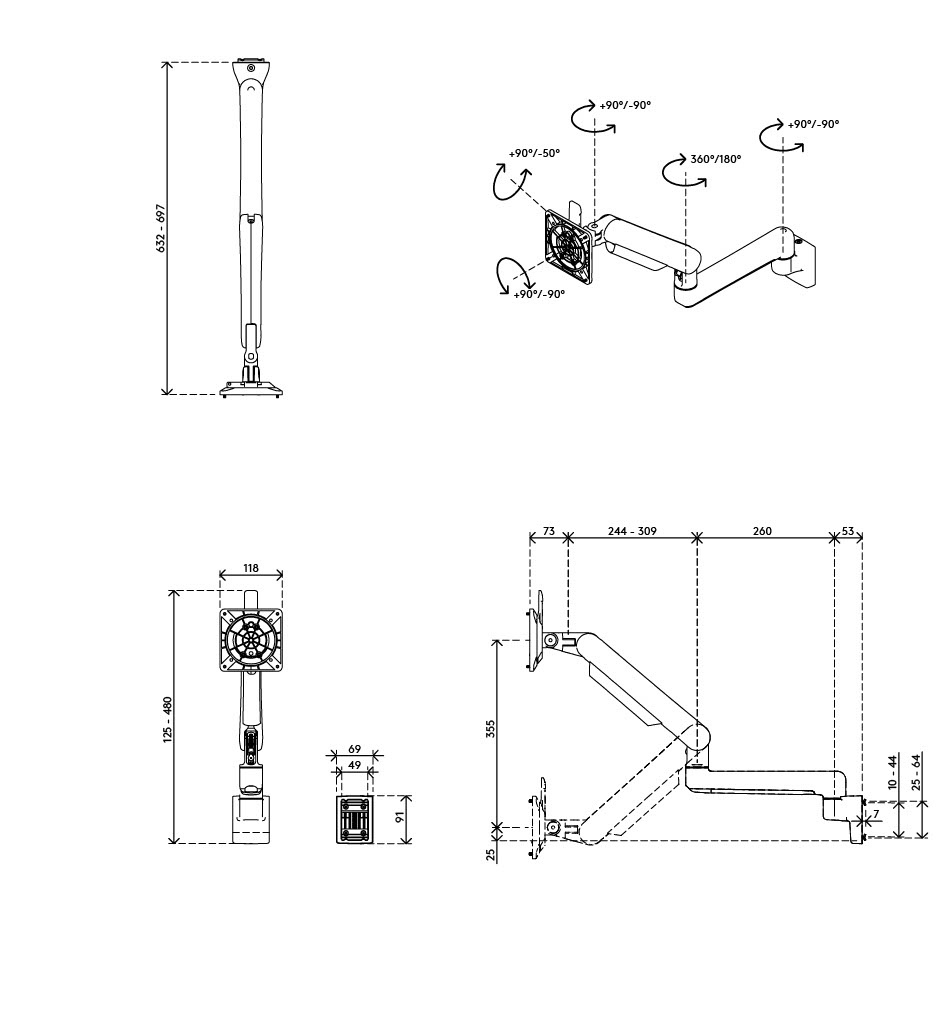 Maak bureauruimte vrij met deze monitorarm die wordt bevestigd op een slatrail/wand of toolbar gasgeveerde monitorarm. De twee extensies maken dit een ideale oplossing voor een diep bureauopppervlak omdat de diepte van de monitors onafhankelijk van elkaar kan worden aangepast. Kabels zijn keurig verborgen in de monitorarm voor een professionele uitstraling.