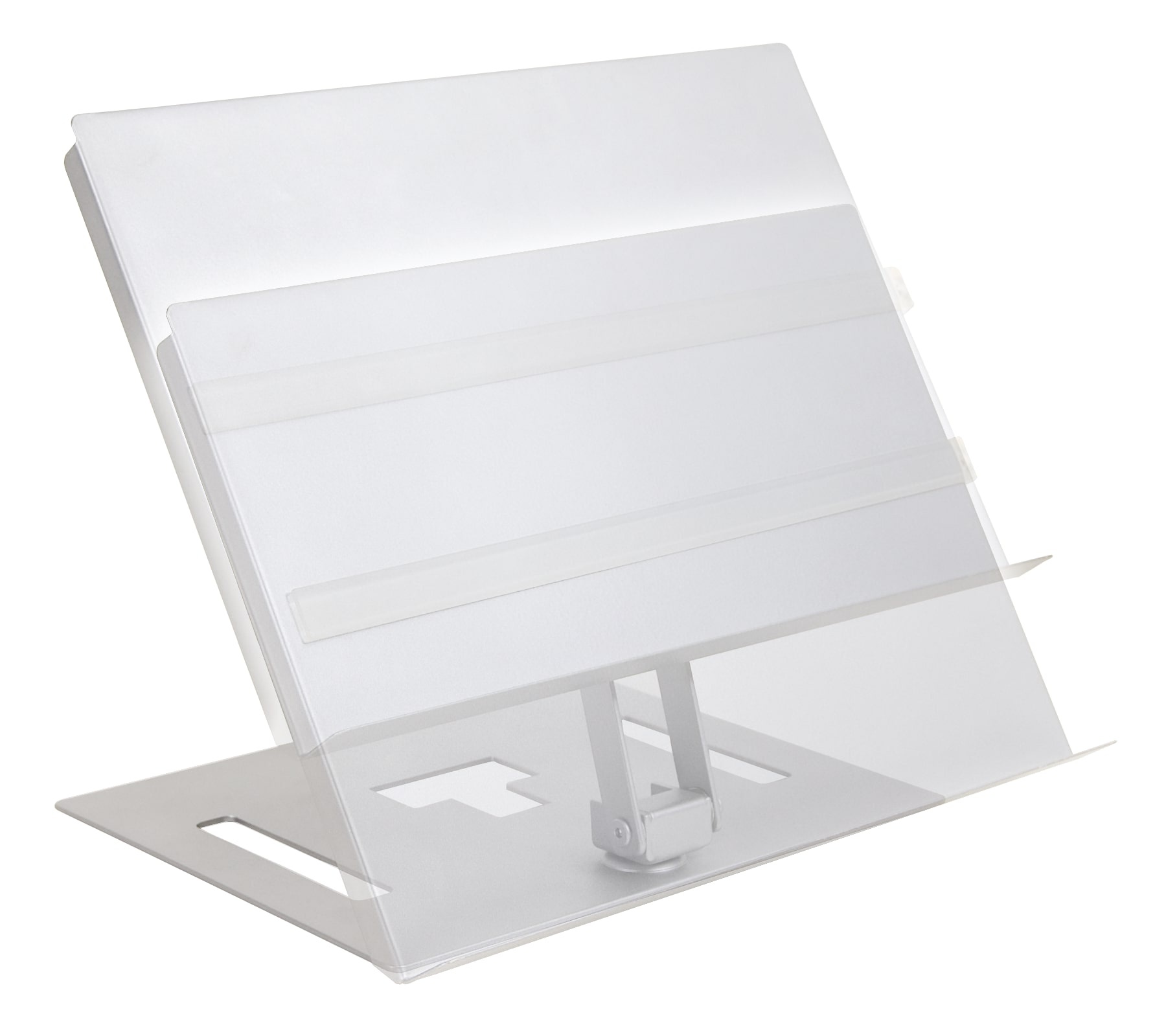 Deze documenthouder is in hoogte, diepte en hoek verstelbaar en wordt geleverd met een magnetische liniaal. Hij is geschikt voor documenten, boeken, folders en dossiers tot A3-formaat. Dankzij de stevige stalen constructie biedt hij ook zwaardere boeken een stabiel platform. De documenthouder plaatst documenten en de monitor in één rechte lijn, wat helpt om vermoeide ogen en nekklachten te voorkomen en bespaart tegelijkertijd bureauruimte.