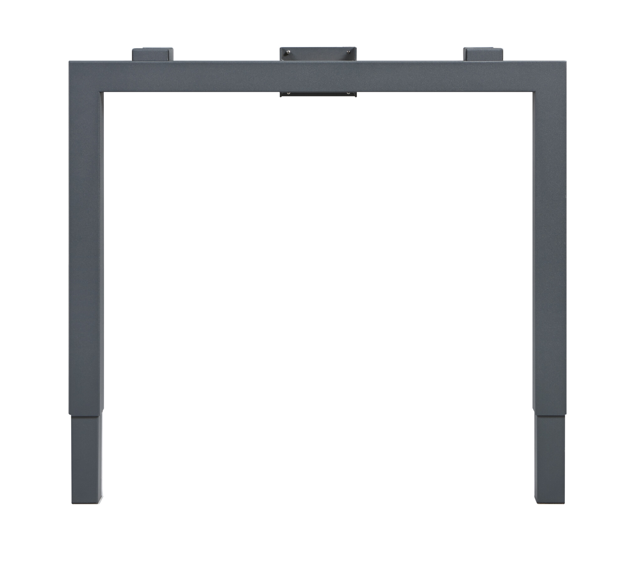 Door de manier waarop het blad op dit frame wordt gemonteerd, lijkt deze boven het frame te zweven. Tussen de N-poten zit een centrale balk. Deze balk dient tevens als kabelgoot waarin je bijvoorbeeld een stekkerblok kunt leggen. De centrale balk is altijd in de kleur zwart en heeft hoekbeugels om het blad in het midden vast te zetten.