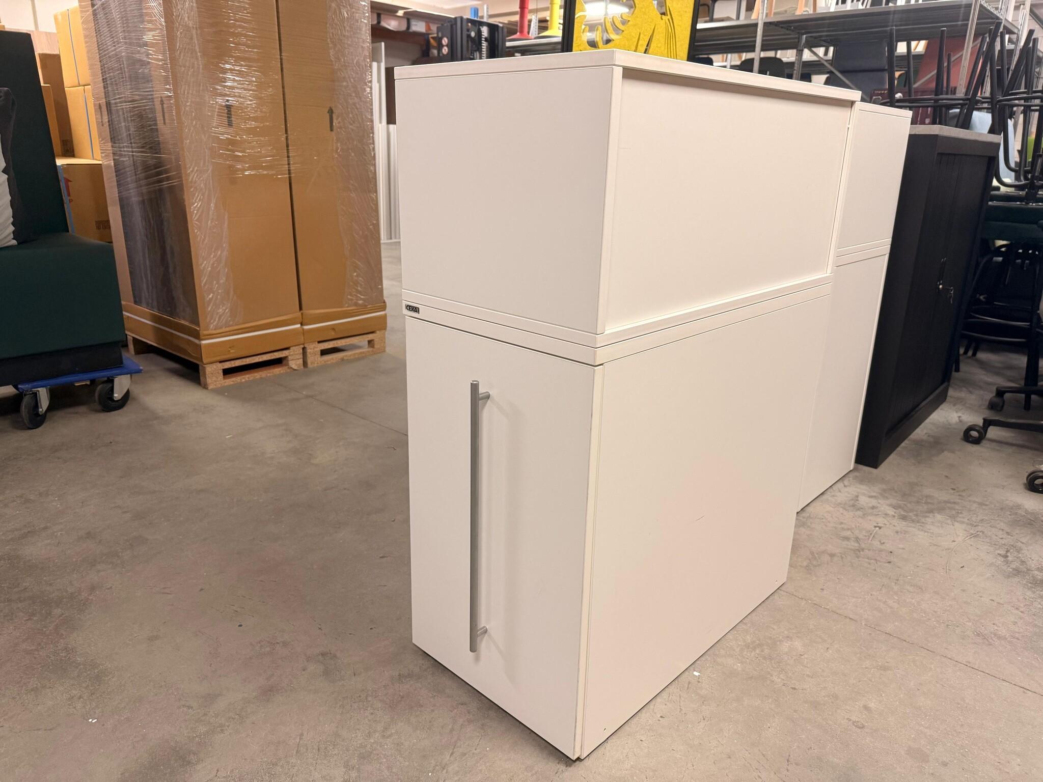 De CEKA apothekerskast is een slimme en ruimtebesparende oplossing voor iedere moderne werkplek. Deze dichtgekoppelde kast wordt aan het uiteinde van een bureau geplaatst en biedt verrassend veel opbergruimte zonder extra vloeroppervlak in beslag te nemen. Ideaal voor kantoren waar efficiëntie en een opgeruimde uitstraling centraal staan.