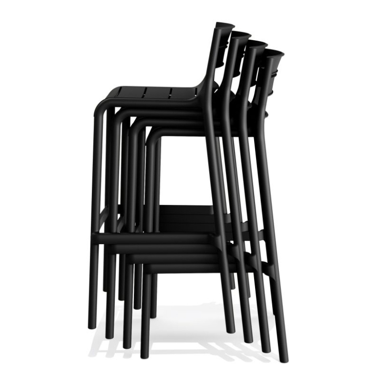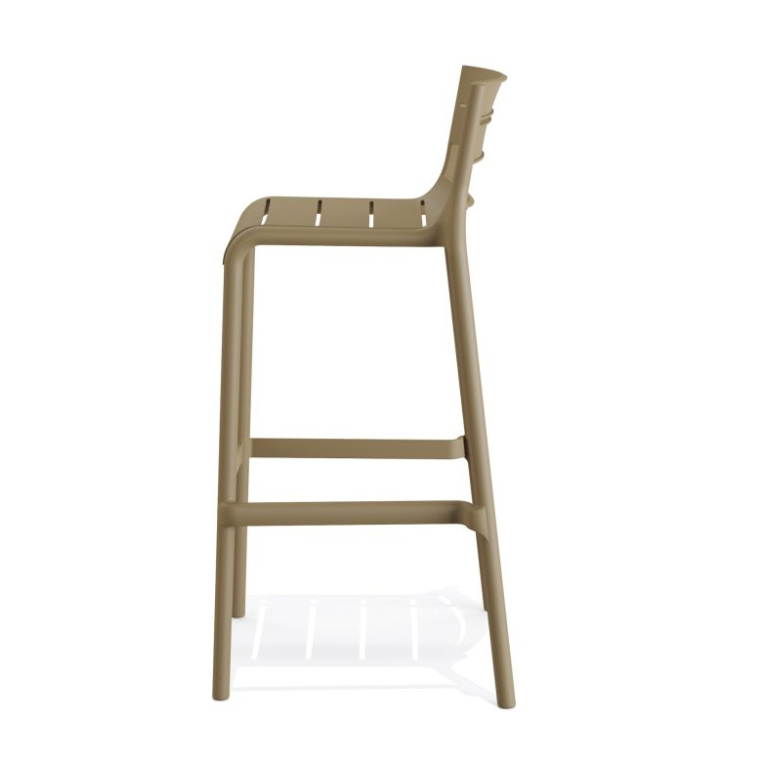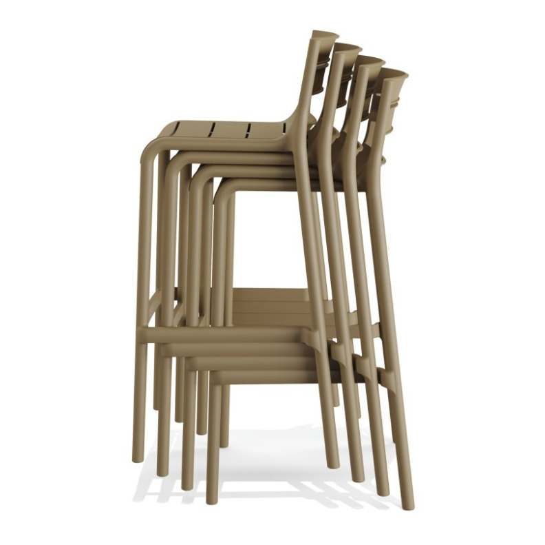 De barkruk is gemaakt van sterk polypropyleen, waardoor hij niet alleen geschikt is voor gebruik binnen, maar ook prima buiten kan staan. Het materiaal is weerbestendig en onderhoudsvriendelijk, wat hem perfect maakt voor terrassen of buitenruimtes.