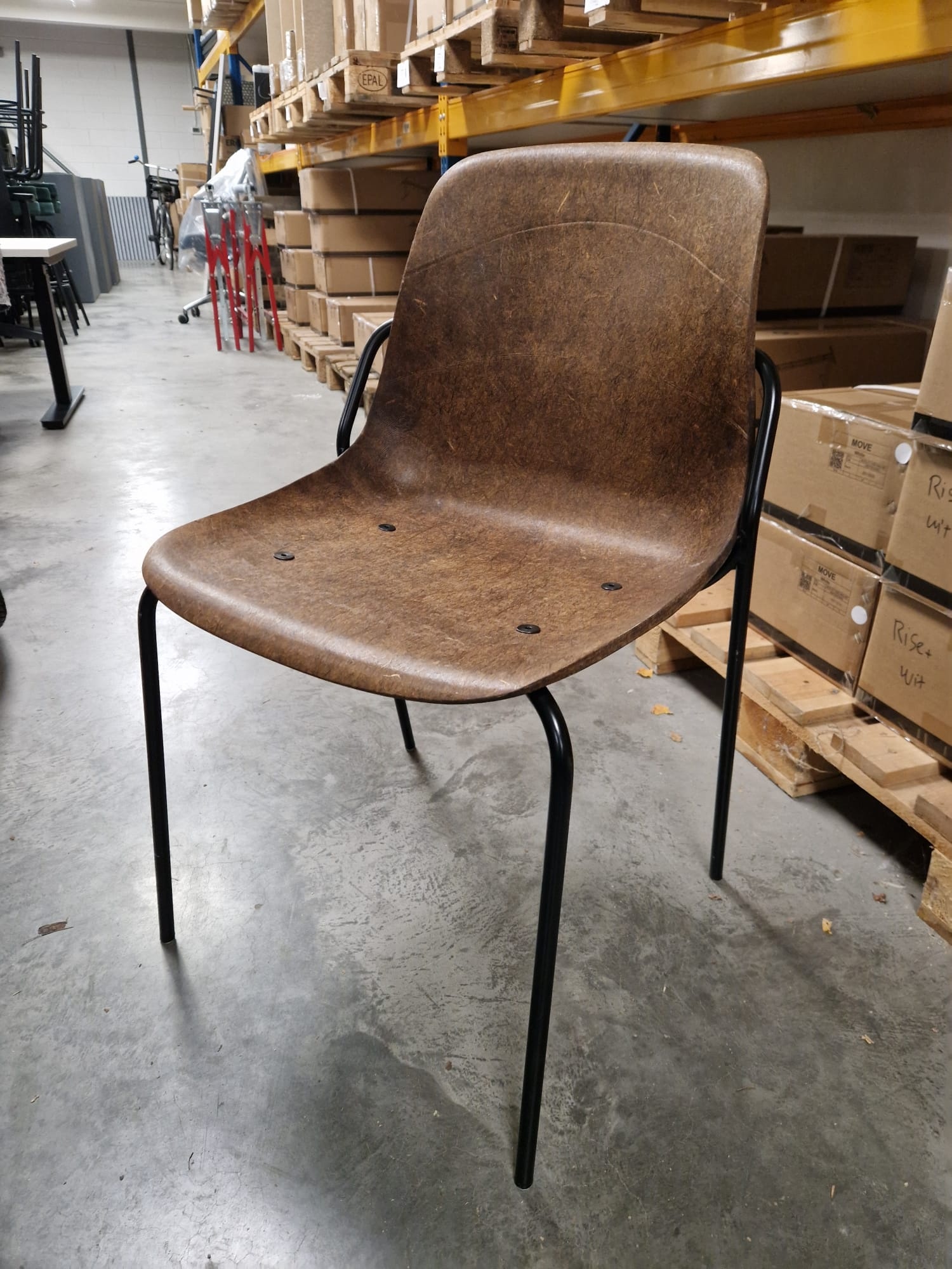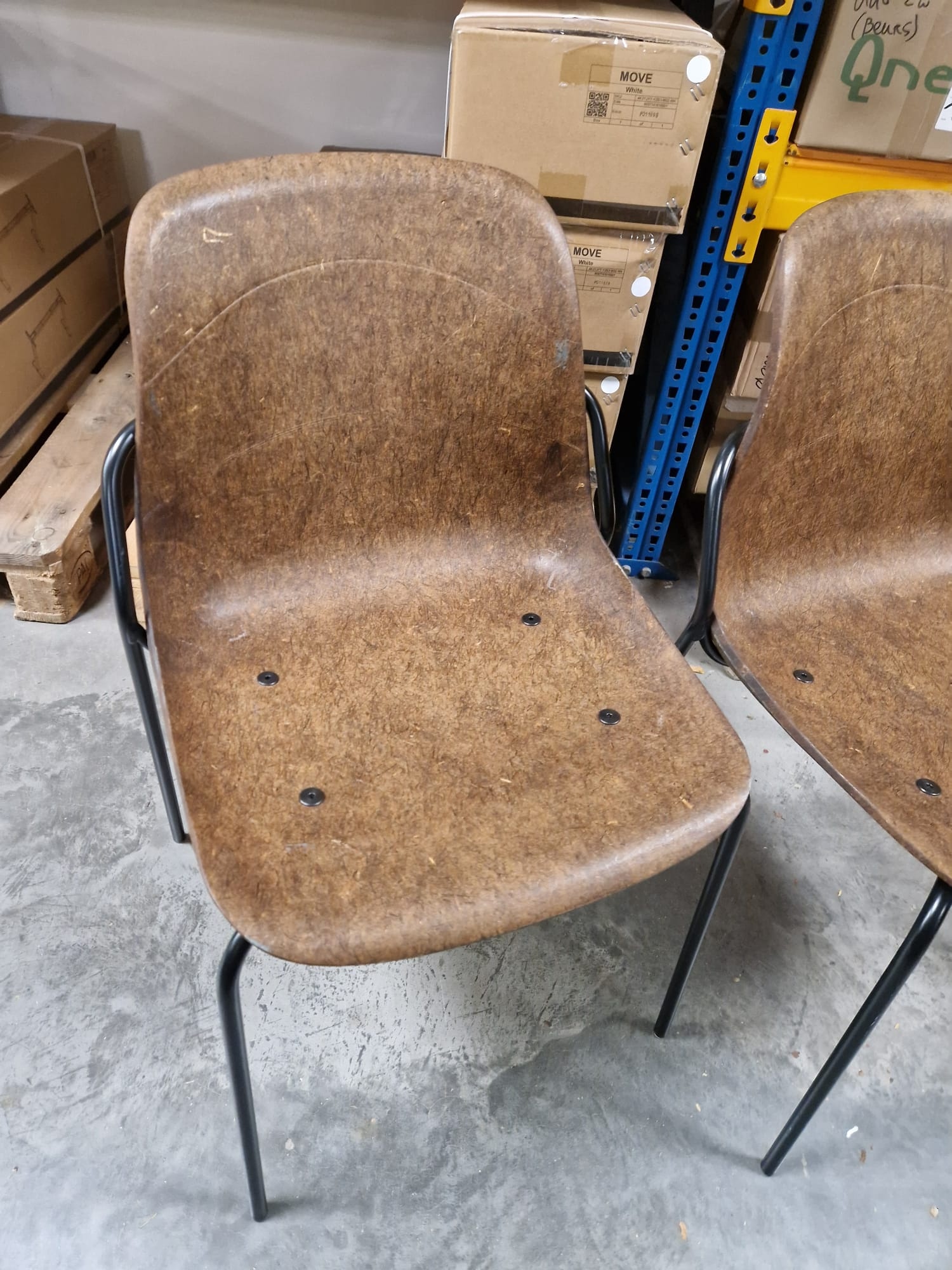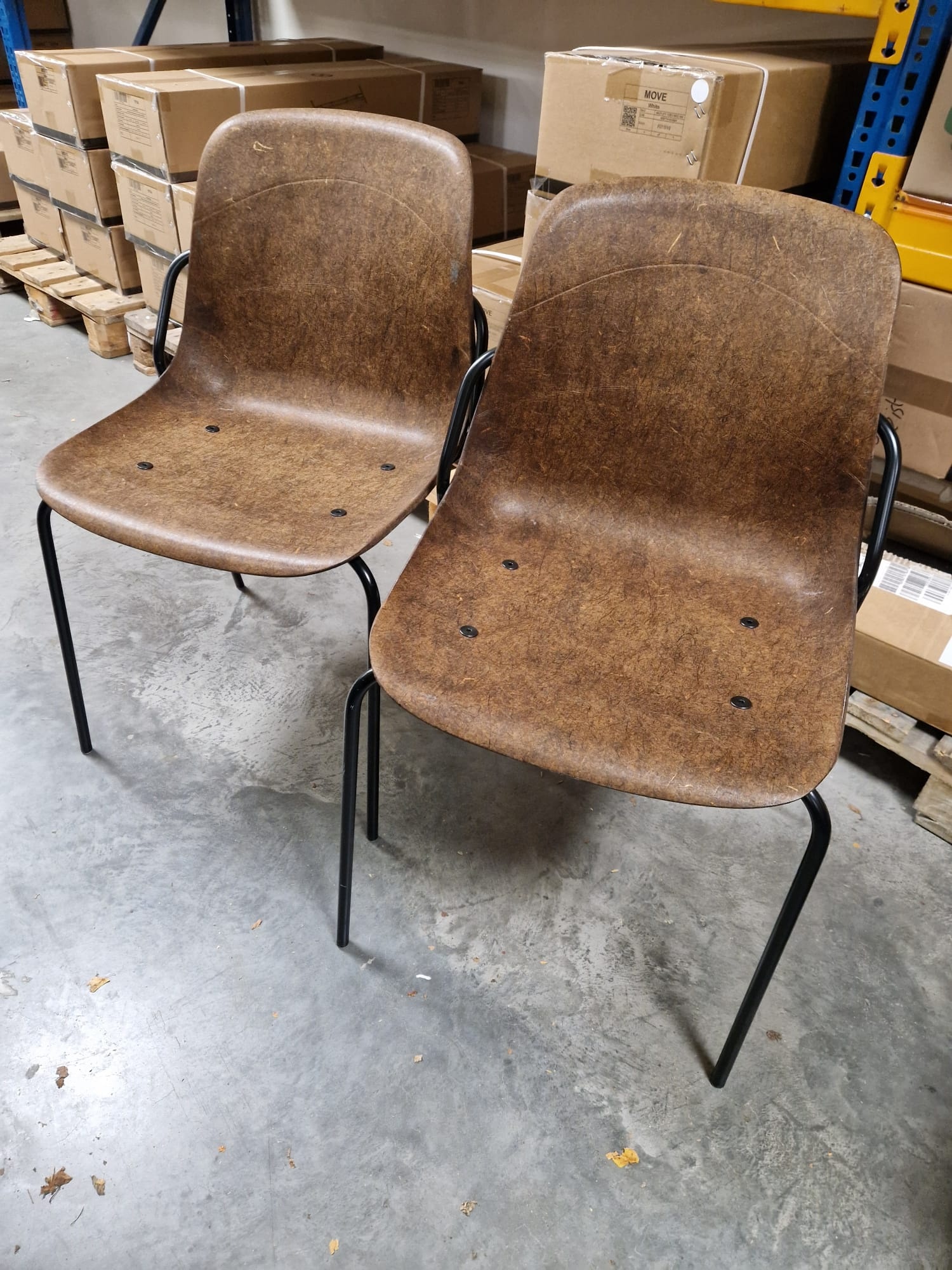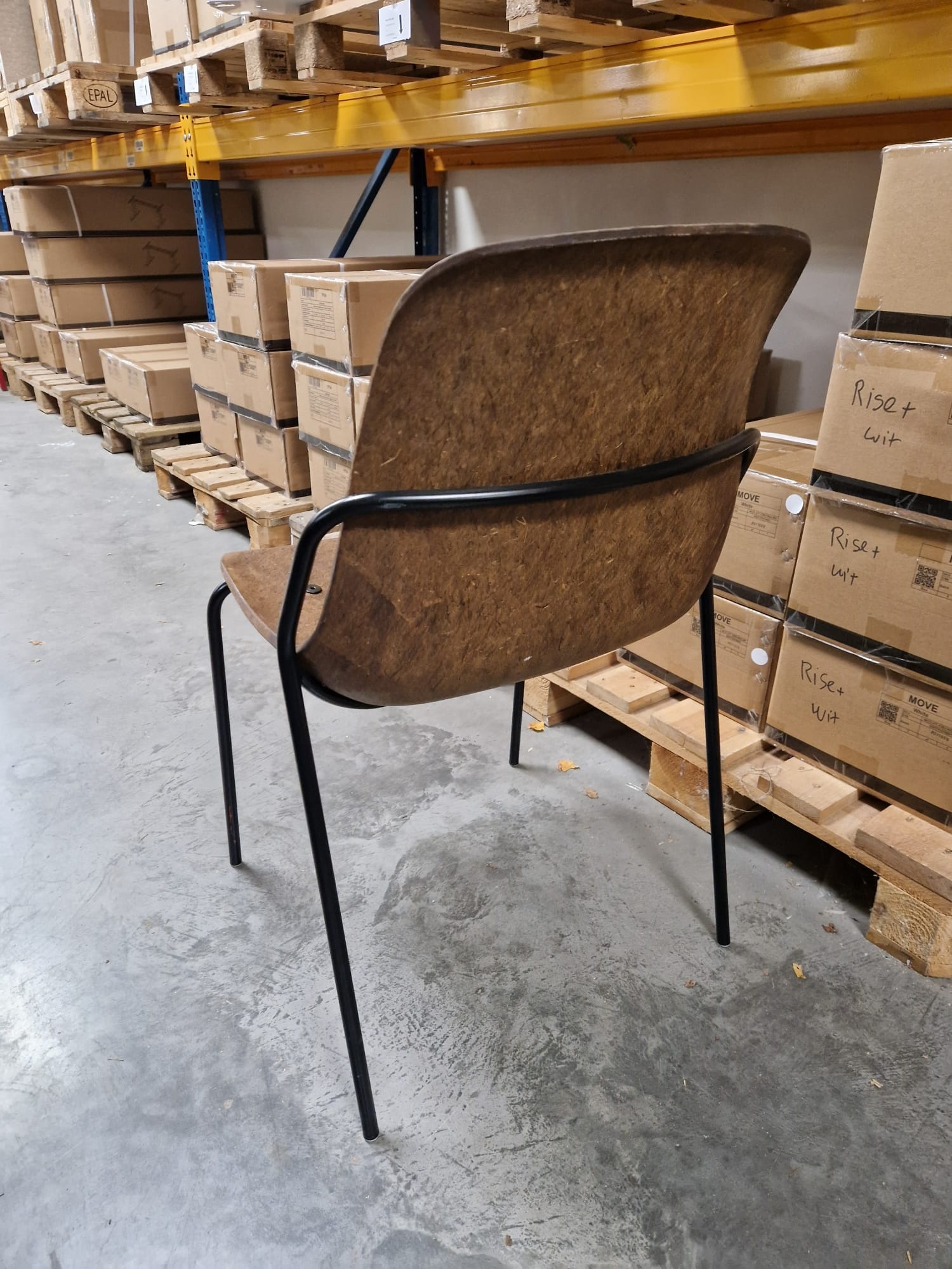 Duurzame Vepa kantine / vergaderstoel met een kuip gemaakt van een innovatief natuurmateriaal op basis van hennepvezels en plantaardige hars. De stoel voelt stevig aan, heeft een unieke uitstraling en is volledig biologisch en recyclebaar.