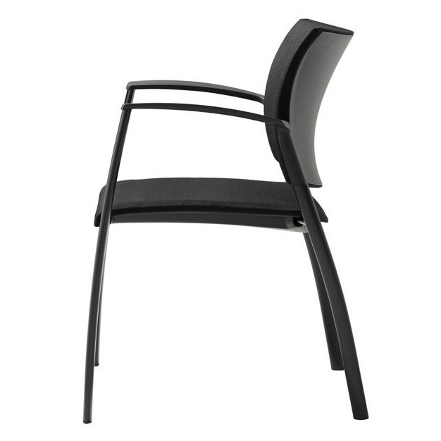 De Vergaderstoel Arvia is voorzien van een zwart gestoffeerde zit en rugleuning. Dit maakt de stoel comfortabel voor langere vergaderingen en draagt bij aan een professionele uitstraling. De bekleding is slijtvast en geschikt voor intensief gebruik.