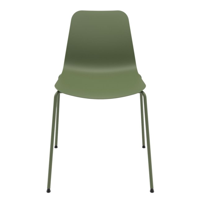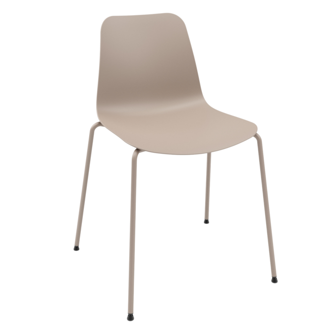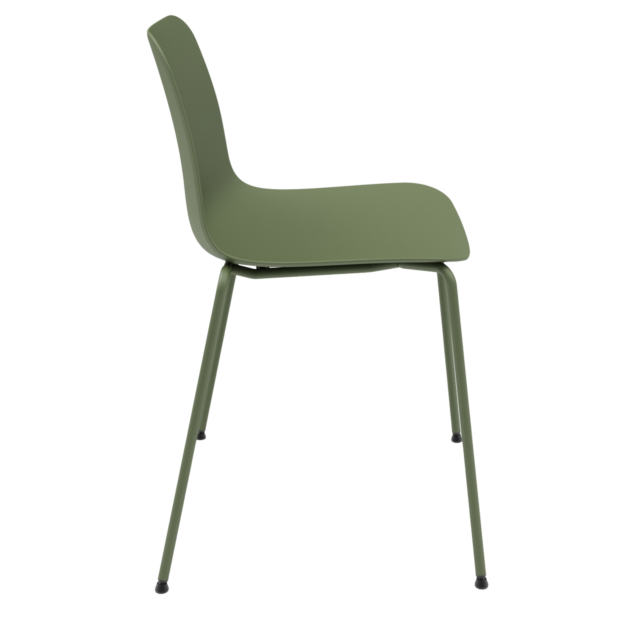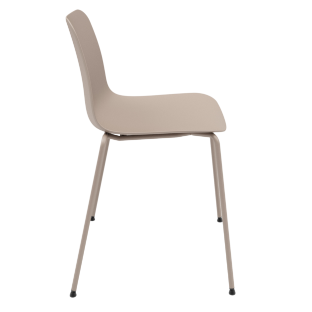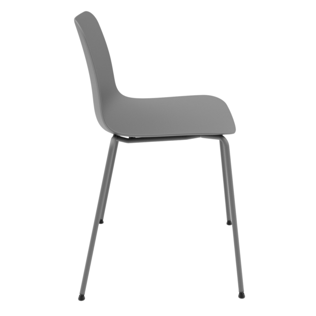 Het vierpoots frame zorgt voor een stabiele basis. De stoel blijft stevig staan, ook bij veelvuldig opstaan en aanschuiven. De vloerdoppen beschermen de vloer tegen krassen.